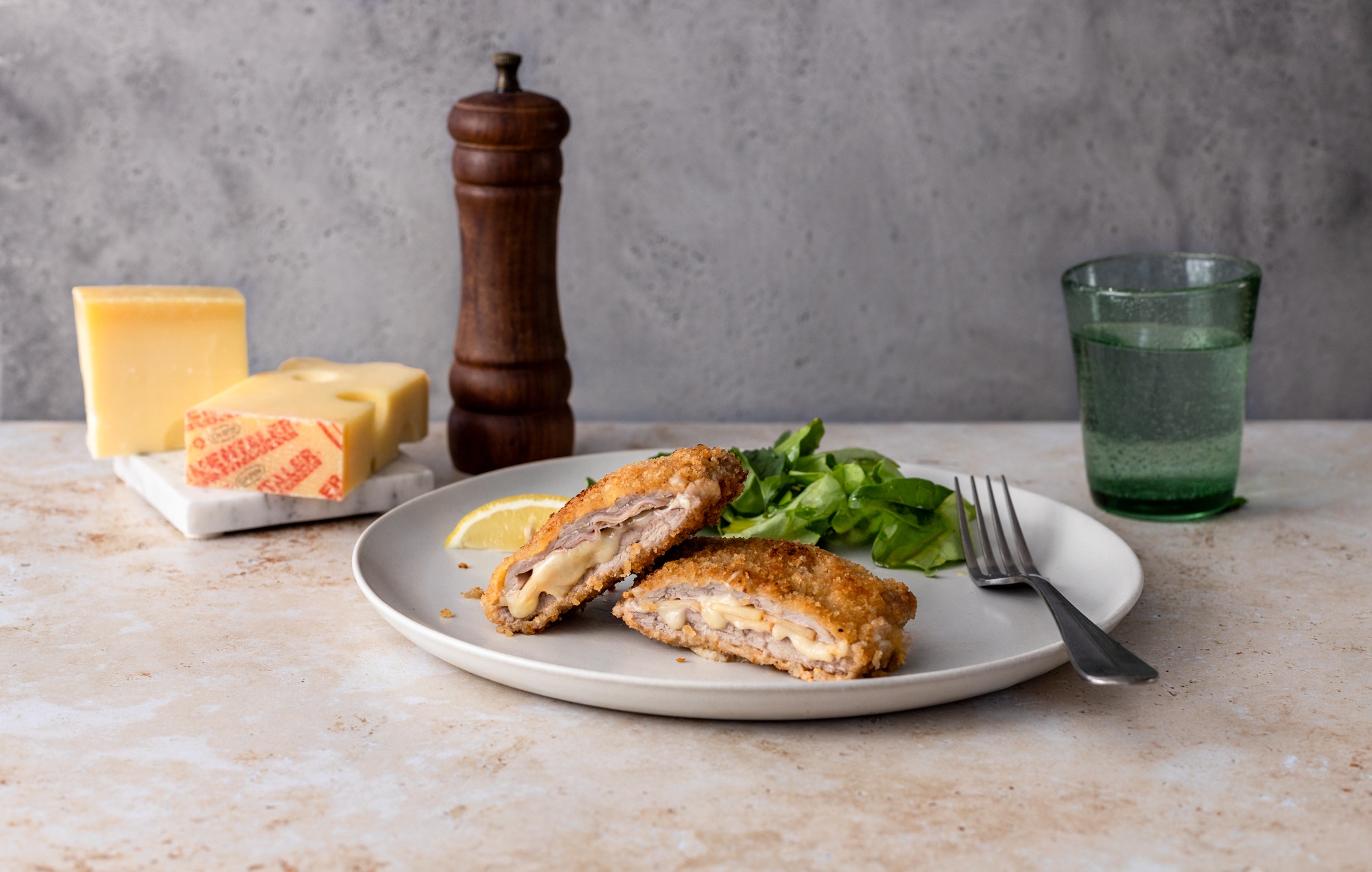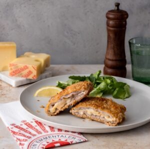 Wir haben uns diesmal aber nicht für einen Walliser Käse, sondern für original Emmentaler AOP entschieden, der mit seinem Aroma und auch der Art wie er schmilzt perfekt in dieses Gericht passt. Ältere Reifegrade (z.B. 12 monatiger Emmentaler AOP), machen das Cordon bleu rezenter und geben ihm mehr Charakter, junger Emmentaler AOP macht es frischer und verleiht ihm den intensiven klassischen Emmentaler Geschmack.